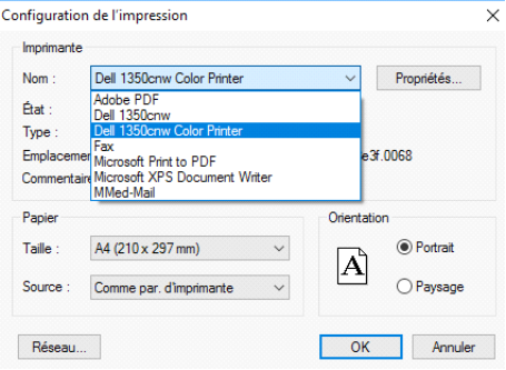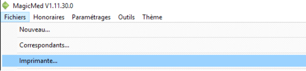 Pour configurer l'imprimante par défaut, aller dans le menu 'Fichier'.