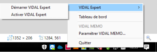 Vérifier que votre logiciel Vidal expert est bien à jour avec un click-droit sur l'icone "vidal", situé à droite dans la barre de tâches.
