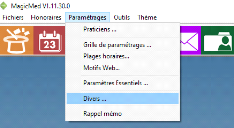 Si les prescriptions LAP ne s'affichent plus, cliquer sur 'paramétrages' puis 'divers'